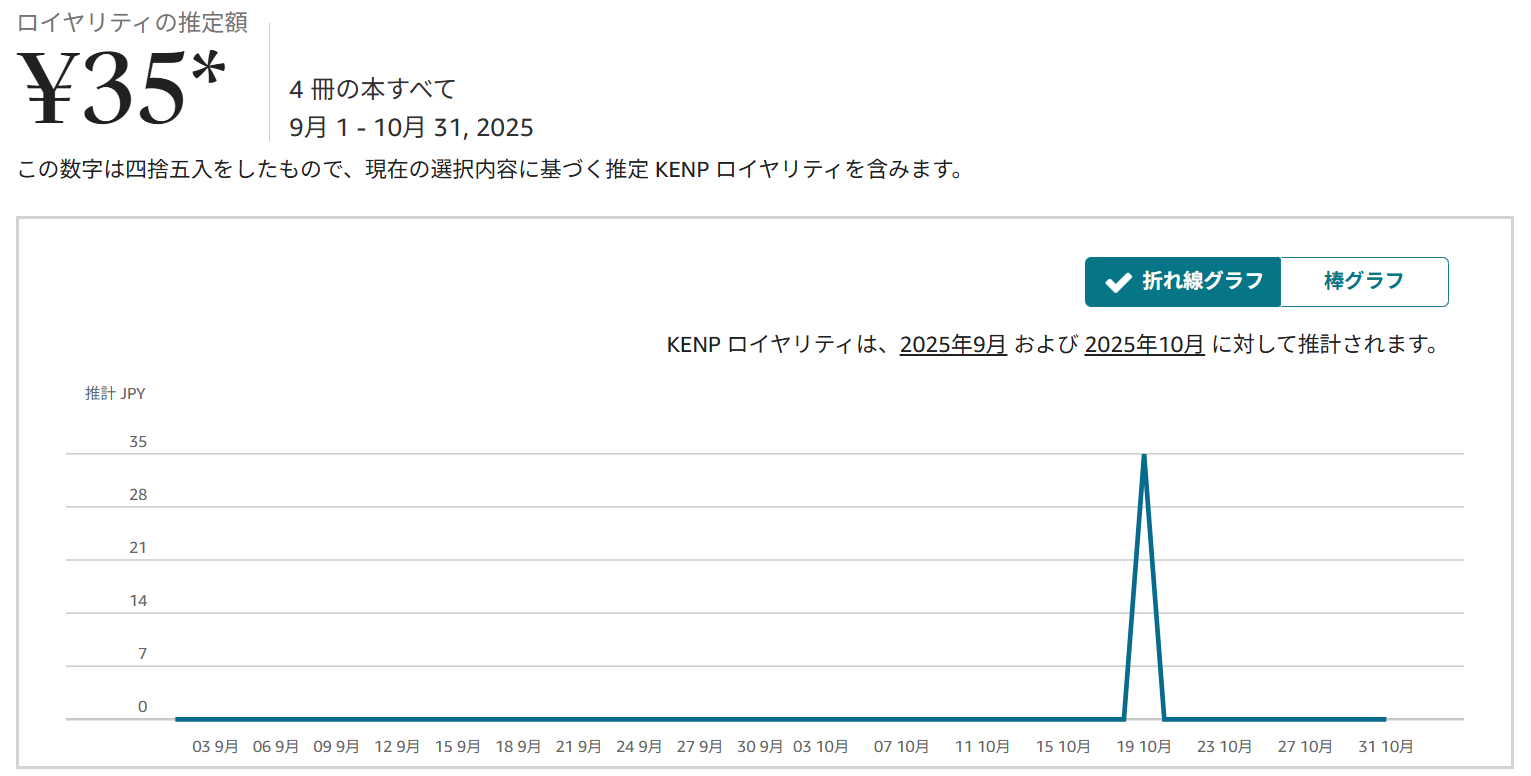 久しぶりに・・・ロイヤリティが35円計上されました。Amazon Kindle Unlimittedでお読みいただきました皆さん、ありがとうごいます!!