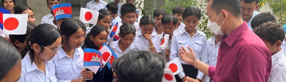 午後に訪れたコンポンスプー州の学校では、日本からの支援であることを明確に伝える新たな取り組みを実践しました。国旗を掲げ、短いスピーチで想いを伝える。子どもたちの笑顔を見て、「改善は確実に意味がある」と実感できた時間でした。