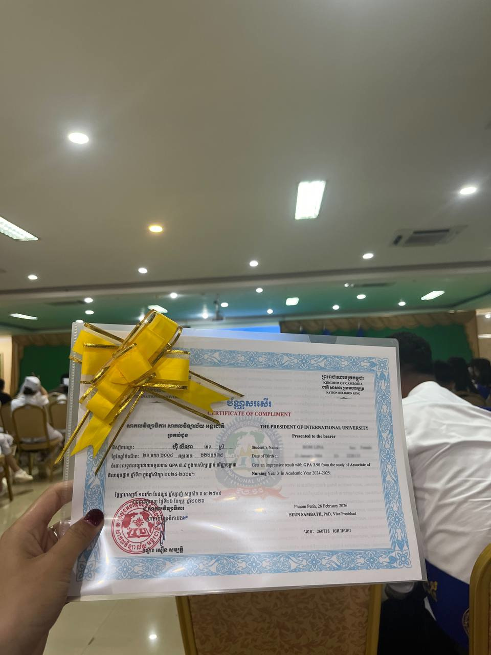 笑顔で証書を持つ彼女の姿を見て、胸が熱くなりました。本当にうれしそう!!!